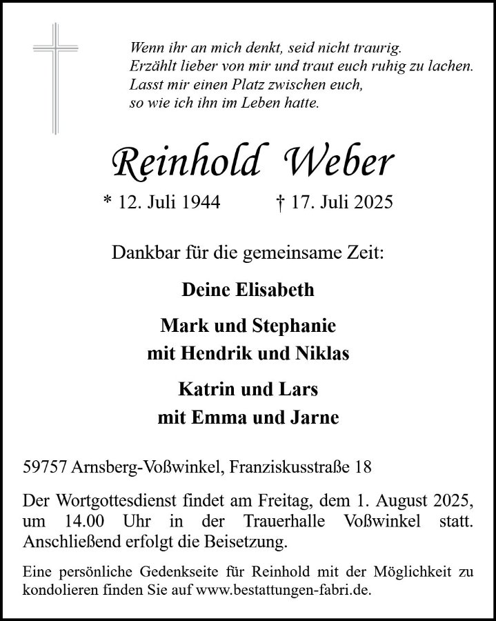 geboren am 12. Juli 1944 in Arnsberg-Voßwinkel